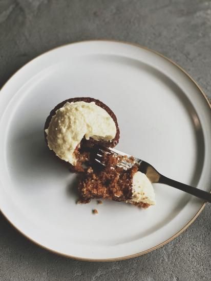 中にレーズンを入れクリームチーズフロスティングをたっぷりのせたキャロットケーキを4個